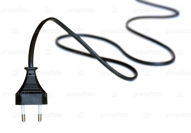 Длинный черный кабель с вилкой на белом фоне