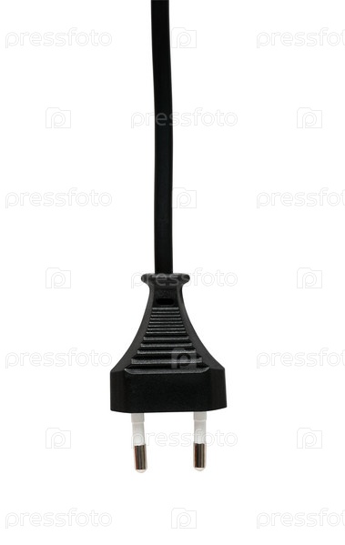 Черный кабель с вилкой на белом фоне