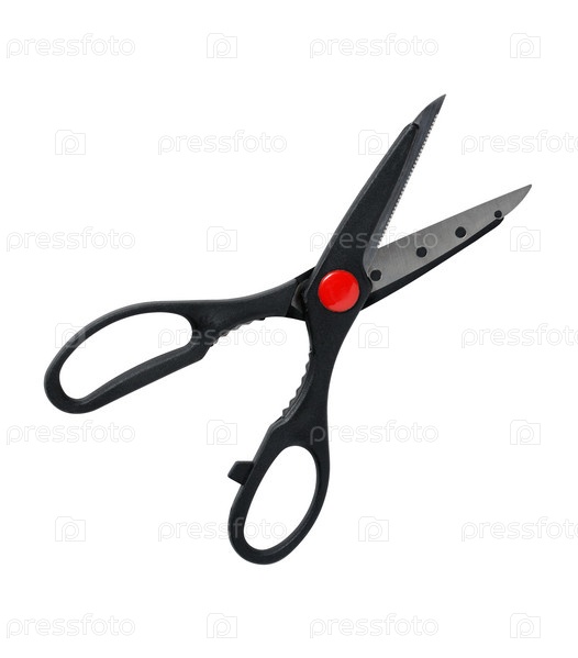 Ножницы с черными ручками на белом фоне