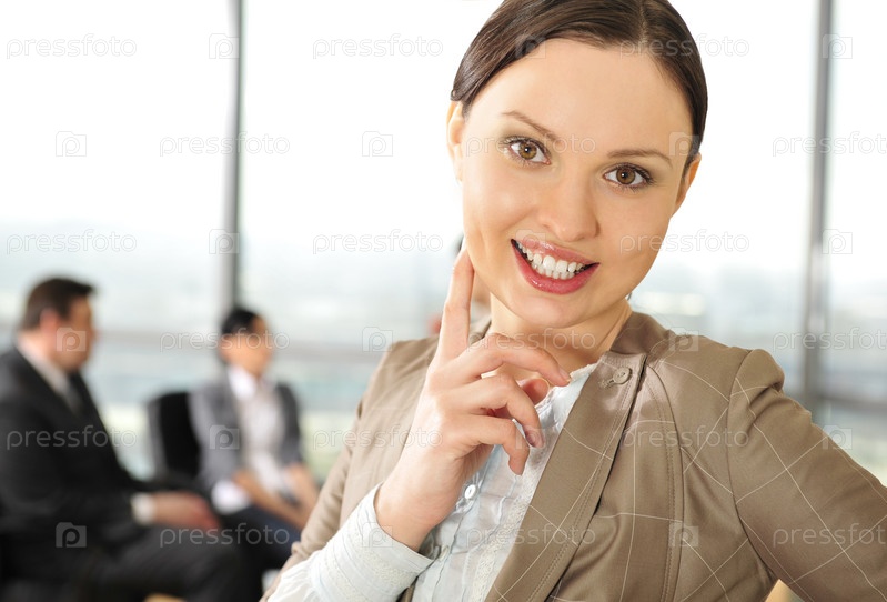Портрет красивой молодой девушки в офисе