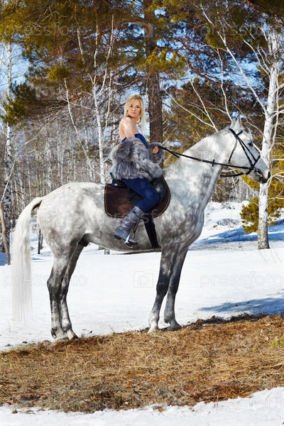 Молодая красивая женщина на лошади