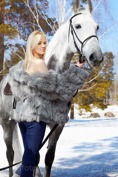 Молодая красивая женщина с лошадью