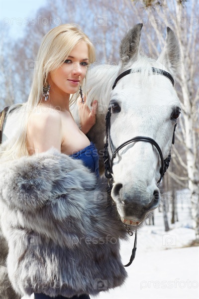 Молодая красивая женщина с лошадью
