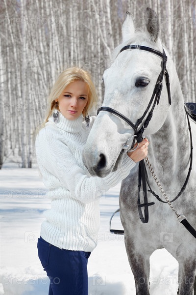 Молодая красивая женщина с лошадью