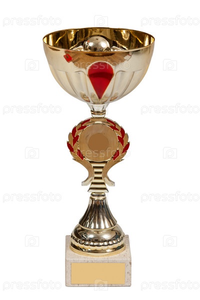 Золотой кубок победителя на белом фоне