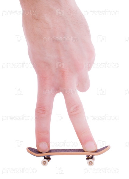 Fingerboard - уменьшенная копия скейтборда, изолированного на белом фоне