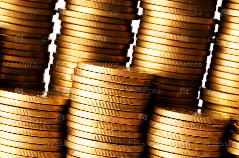 Стопки золотых монет крупным планом
