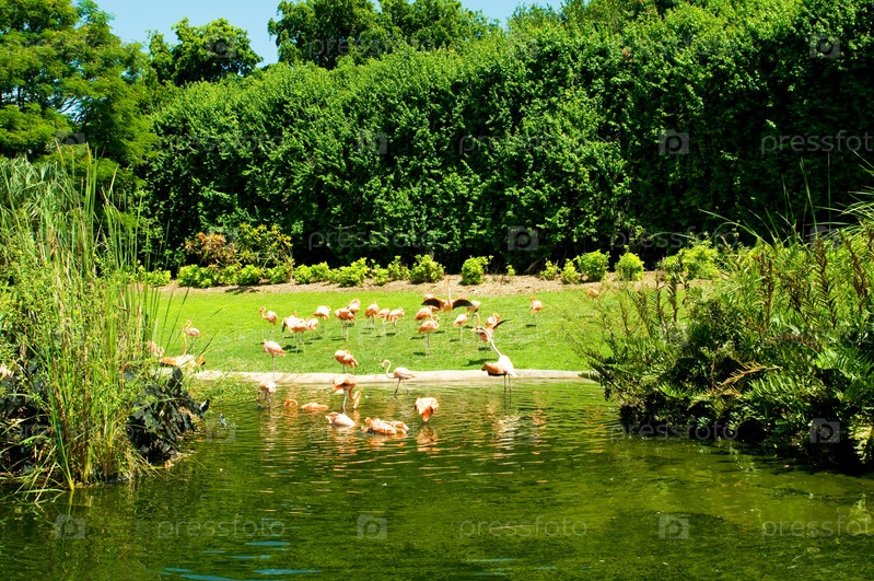 Розовые фламинго, яркий летний день