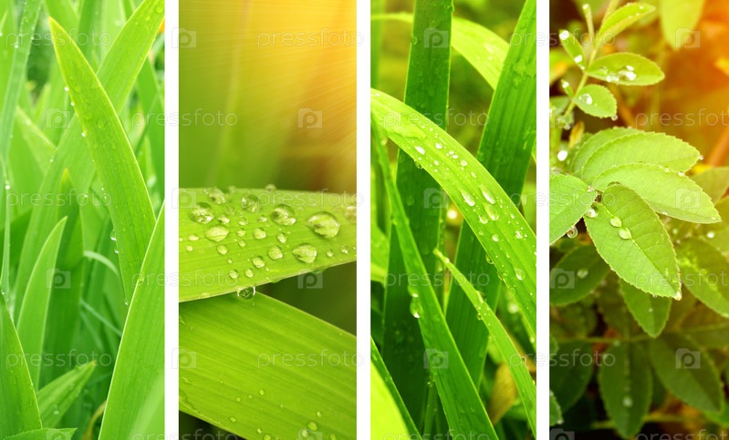 Капли дождя на листьях, коллаж