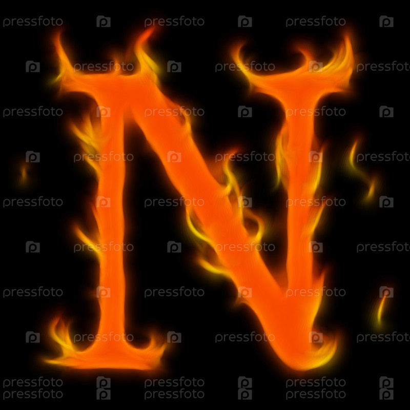 Абстрактный символ алфавита, имитируемый пламенем на черном фоне