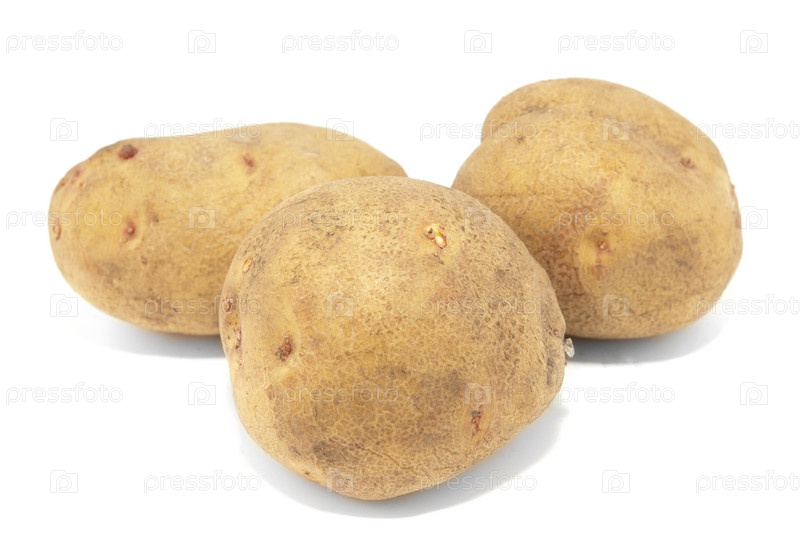 Сырой картофель на белом фоне