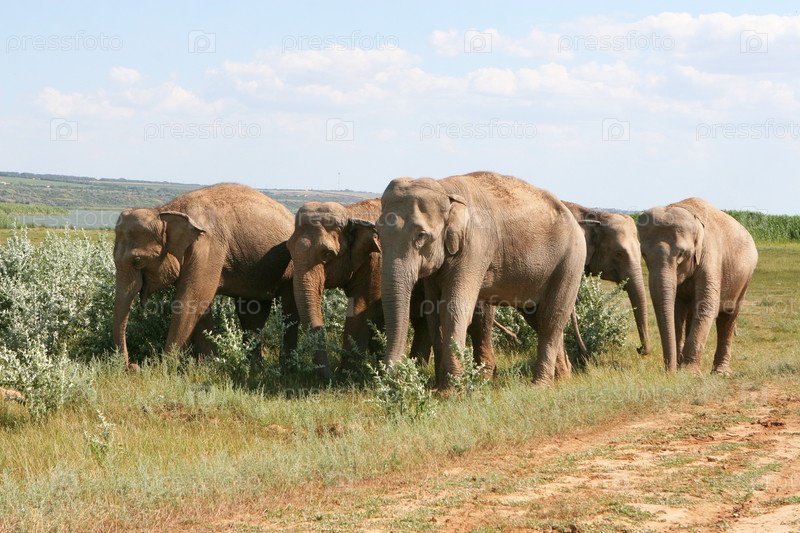 Стадо слонов в дикой природе
