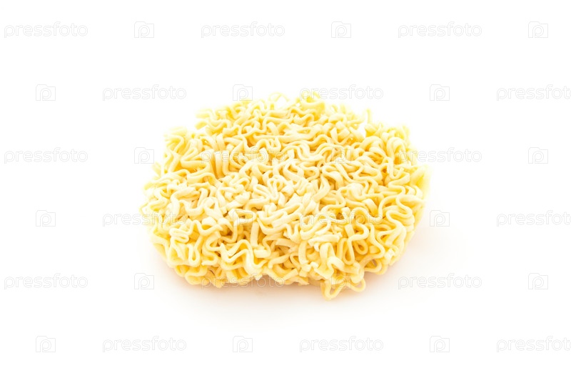 Сухая лапша быстрого приготовления на белом фоне