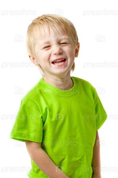 Пятилетний мальчик с закрытыми глазами на белом фоне