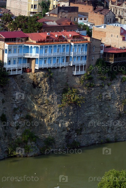 Старый город в Тбилиси. Дома стоят на самом краю высокого берега реки