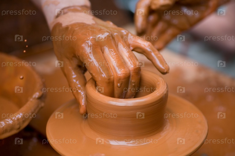 Руки, работающие на гончарном круге