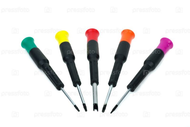 Пять различных отверток на белом фоне