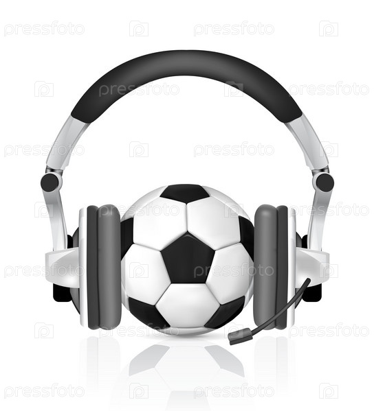 Иллюстрация футбольного мяча с наушниками на белом фоне