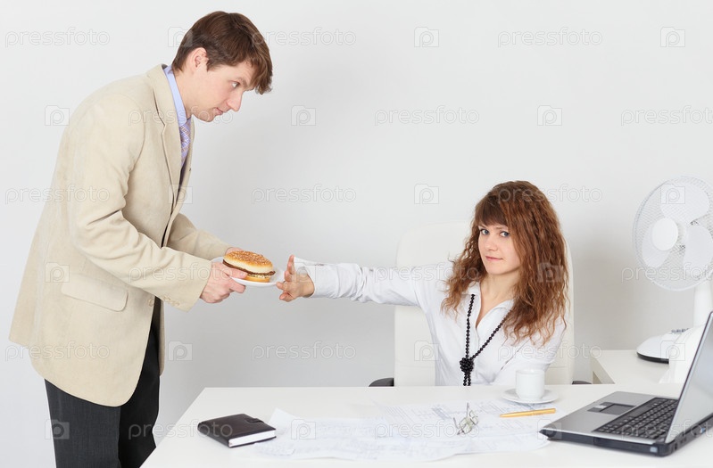 Женщина на диете, отказывается есть на обед