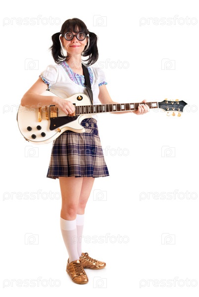 Девушка с гитарой на белом фоне