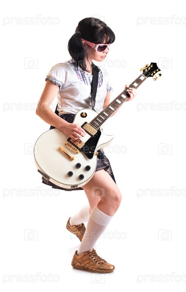 Девушка с гитарой на белом фоне