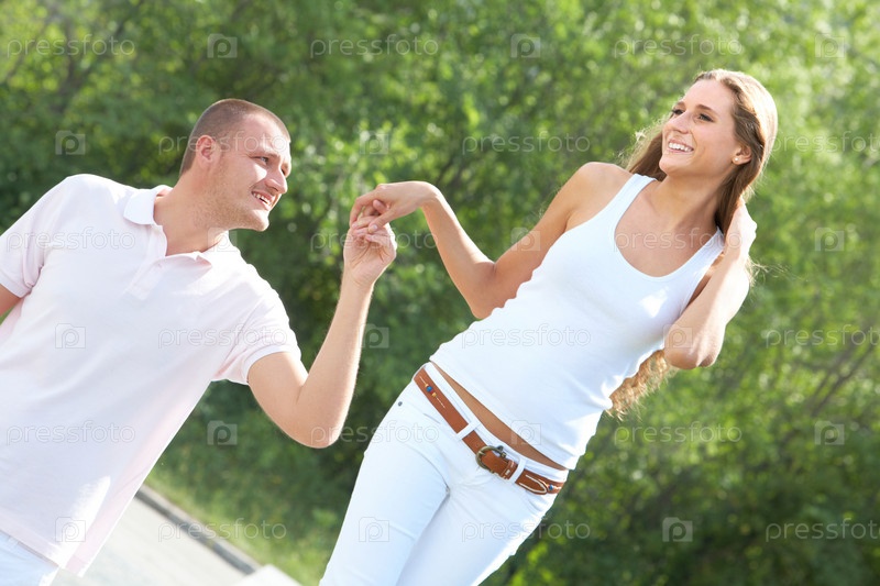 Влюбленная пара вместе на прогулке в парке