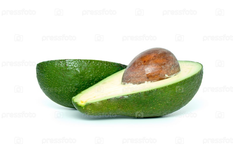 Две половинки авокадо на белом фоне