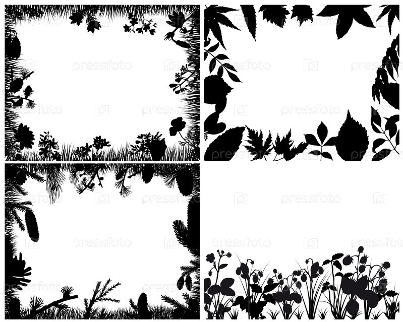 Набор рамок из черных силуэтов растений