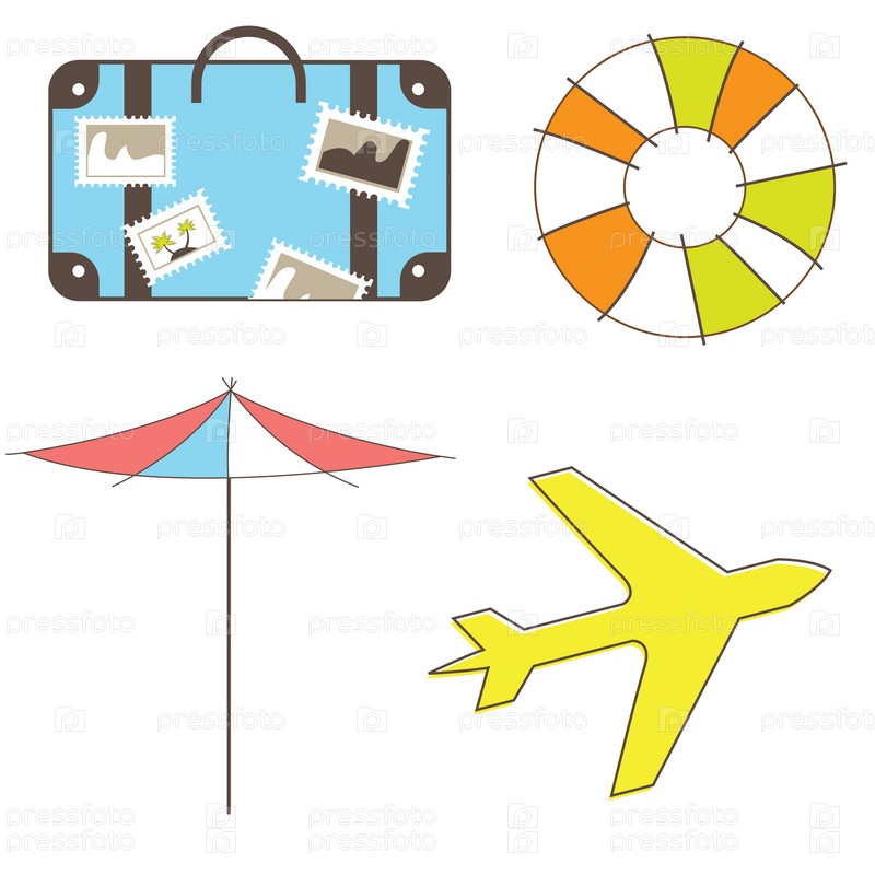 Отпуск и путешествия, клип-арт на белом фоне