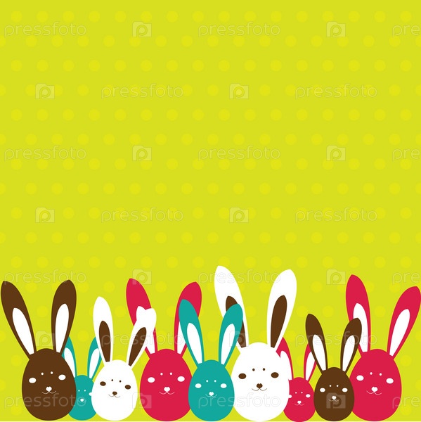 Головы пасхальных кроликов на зеленом фоне, иллюстрация