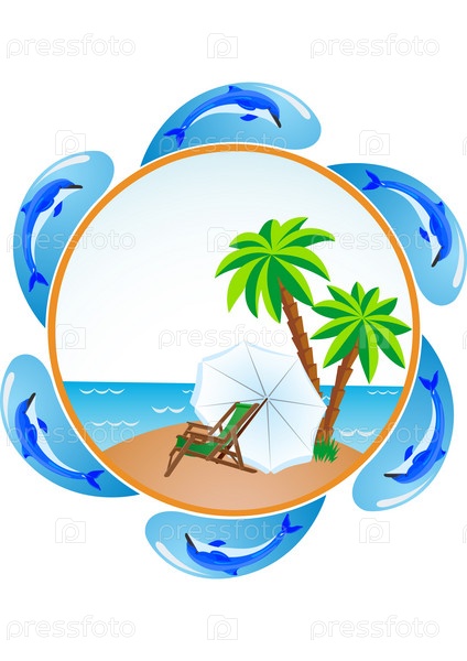 Шезлонг с зонтом на тропическом пляже