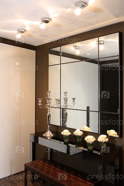 Современный вестибюль с большим зеркалом