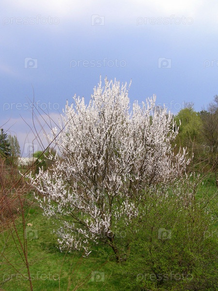 Цветущий куст вишни