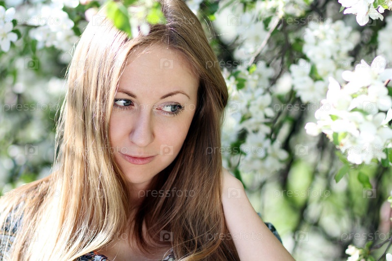 Девушка у цветущей яблони