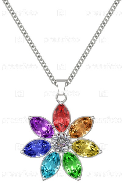 Колонна с драгоценными камнями на белом фоне. 3D изображение высокого разрешения
