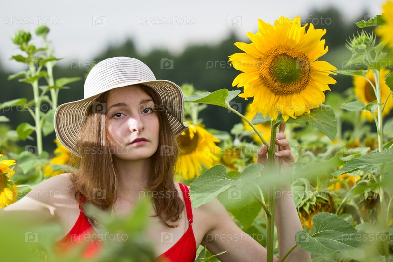Девушка рядом с подсолнухами