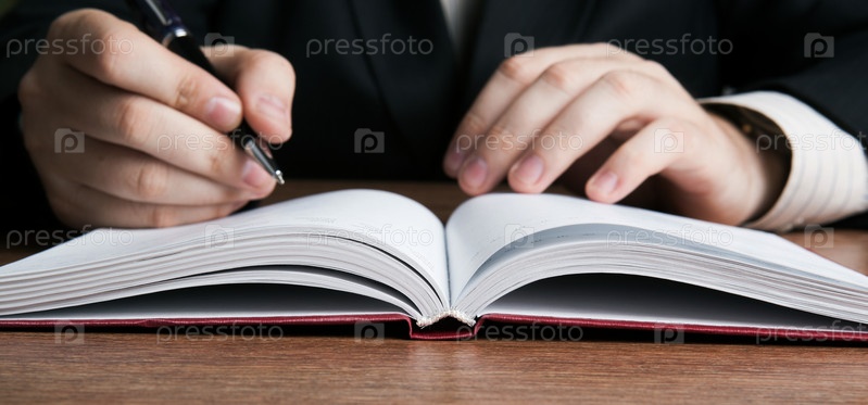 Человек пишет в блокноте