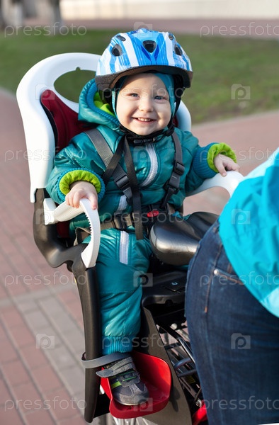 Мальчик на велосипеде за спиной матери