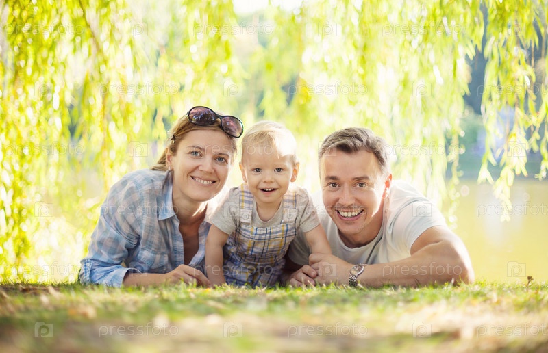 Семья отдыхает в парке
