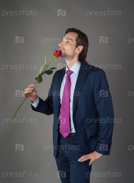 Мужчина в деловом костюме с цветком