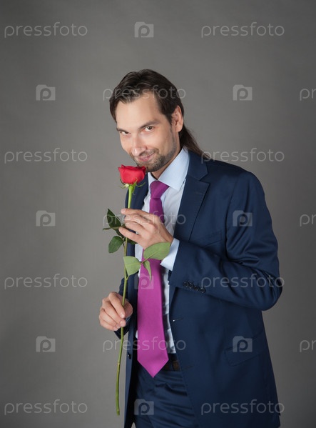 Мужчина в деловом костюме с цветком