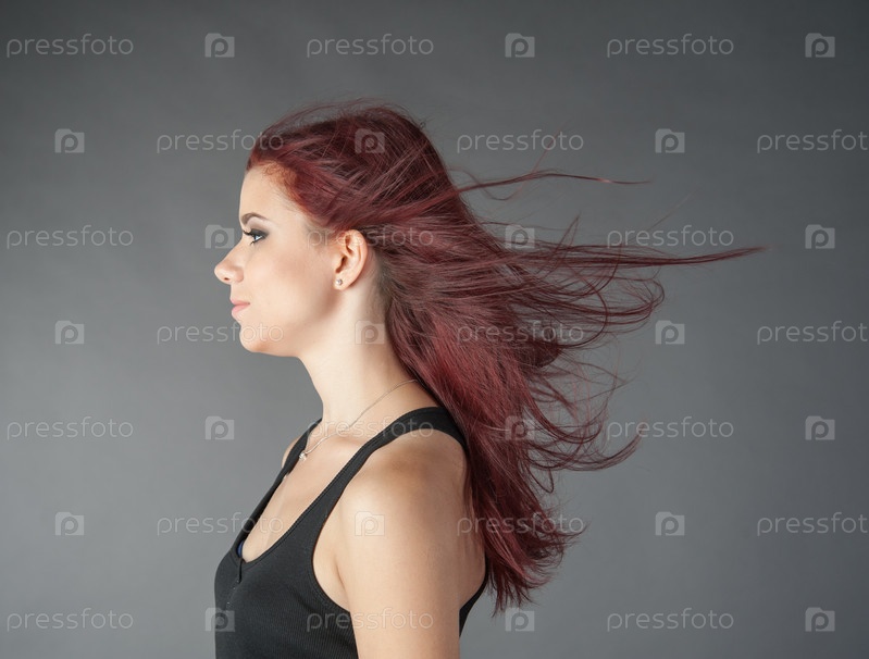 Красивая женщина позирует на сером фоне