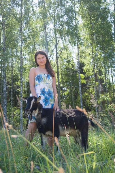 Девушка позирует в летнем березовом лесу