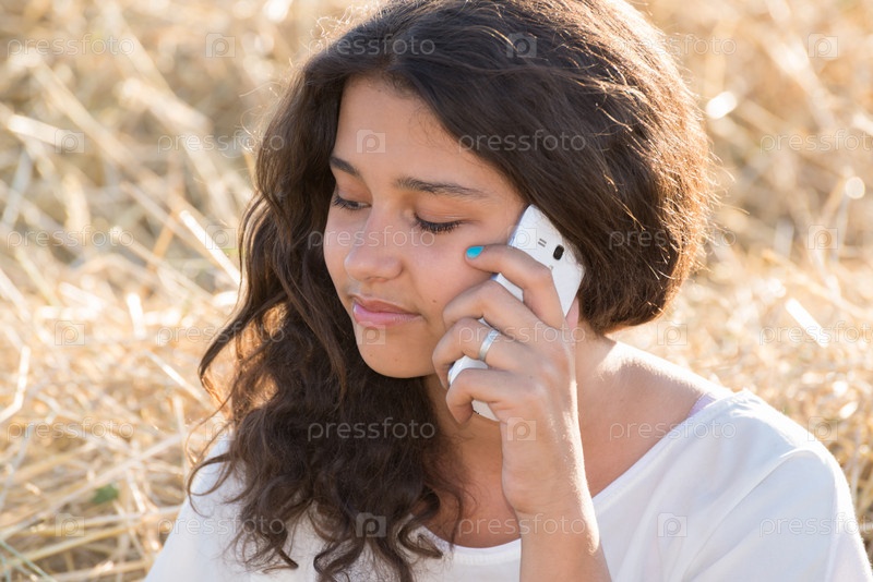 Девушка разговаривает по телефону на открытом воздухе
