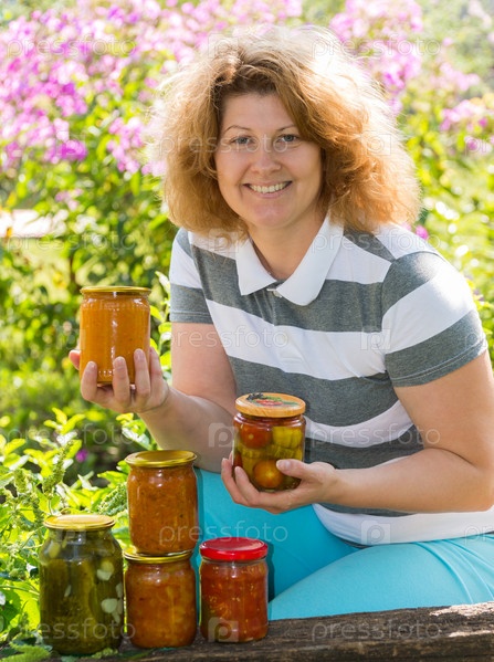 Женщина с консервированными овощами