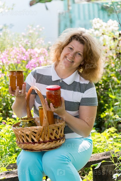Женщина с консервированными овощами