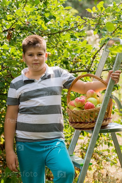 Мальчик с корзиной яблок