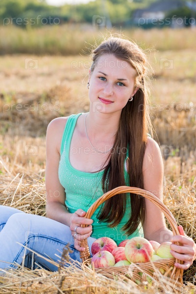 Девушка с корзиной яблок