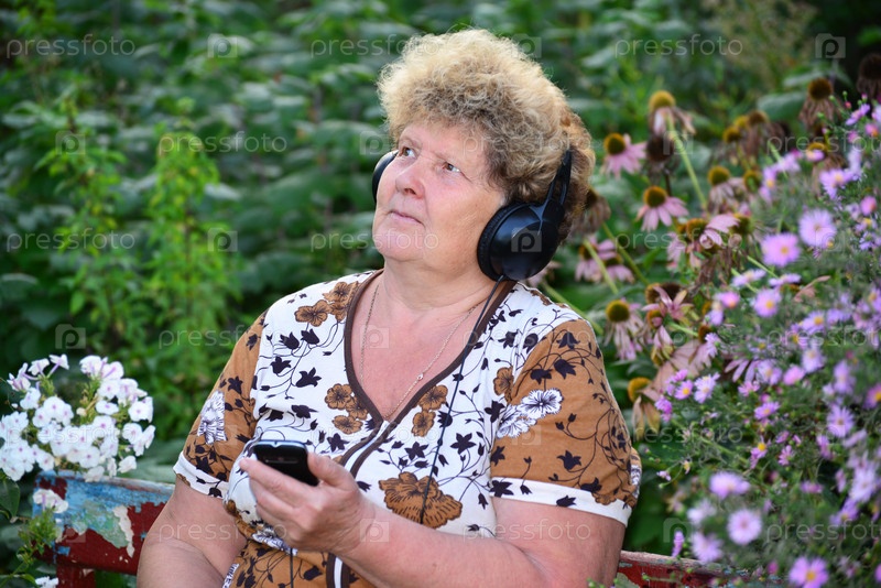 Пожилая женщина слушает музыку