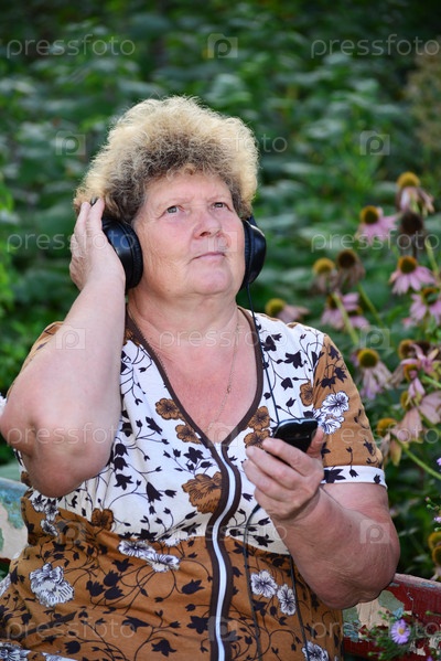 Пожилая женщина слушает музыку